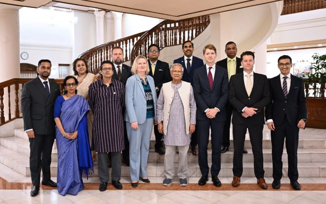 সোমবার ( বিকেলে রাষ্ট্রীয় অতিথি ভবন যমুনায় মার্স্ক গ্রুপ ও ডেনিশ সরকারের প্রতিনিধি দলের সঙ্গে বৈঠকে প্রধান উপদেষ্টা এ কথা বলেন। বৈঠকে মার্স্ক গ্রুপের চেয়ারম্যান রবার্ট মার্স্ক উগলা নেতৃত্ব দেন। এপিএম টার্মিনালস মার্স্ক গ্রুপের মালিকানাধীন প্রতিষ্ঠান। বৈঠকে উপস্থিত ছিলেন ডেনমার্কের ট্রেড অ্যান্ড ইনভেস্টমেন্ট স্টেট মন্ত্রী নিনা গ্যান্ডলোসে হ্যানসেন।