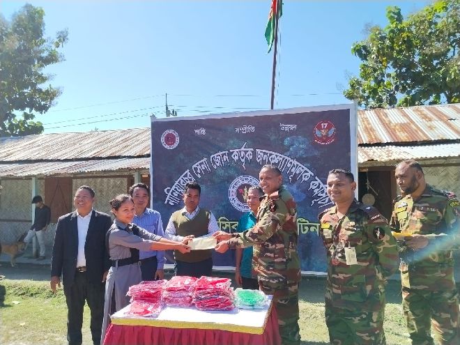 নানিয়ারচরে সেনাবাহিনীর অনুপ্রেরণামূলক ক্লাস ও ক্রীড়া সামগ্রী বিতরণ