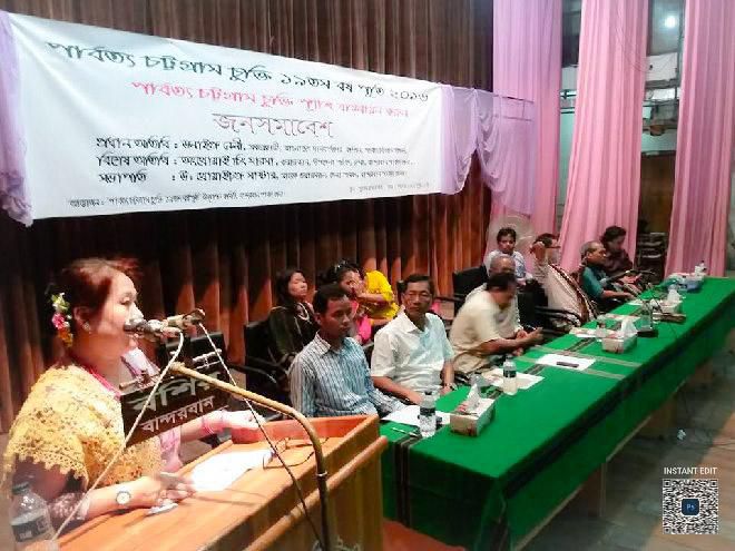 পূর্ণাঙ্গ বাস্তবায়নের দাবিতে বান্দরবানে গণসমাবেশ। শান্তি-উন্নয়ন-সম্প্রীতির বার্তা পাহাড়ে।