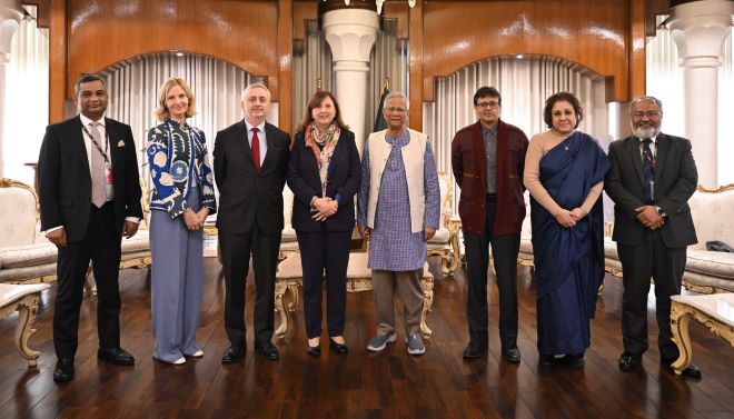 সাক্ষাতে উপস্থিত ছিলেন প্রধান উপদেষ্টার বিশেষ দূত লুৎফে সিদ্দিকি, এসডিজি সমন্বয়কারী ও সিনিয়র সচিব লামিয়া মর্শেদ, এবং বাংলাদেশে ইউরোপীয় ইউনিয়নের রাষ্ট্রদূত মাইকেল মিলার।