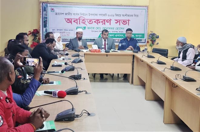 সভায় সভাপতিত্ব করেন উপজেলা নির্বাহী কর্মকর্তা (ইউএনও) মো. মোনাব্বর হোসেন। উপস্থিত ছিলেন তারাগঞ্জ থানার ওসি রুহুল আমিন, উপজেলা প্রাণিসম্পদ কর্মকর্তা মো. ইফতেখারুল ইসলাম, উপজেলা নির্বাচন কর্মকর্তা শিমু পারভীন, উপজেলা দপ্তরের কর্মকর্তা এবং প্রিন্ট ও ইলেকট্রনিক মিডিয়ার সাংবাদিকবৃন্দ।