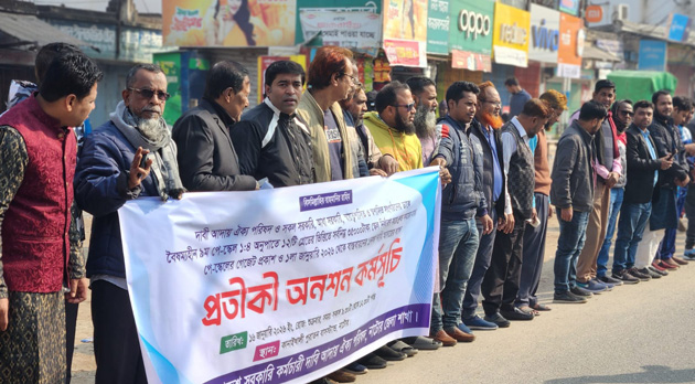 নতুন পে স্কেলের দাবিতে নাটোরে কর্মচারীদের অনশন
