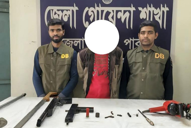 নিজস্ব প্রতিবেদক, পাবনা: পাবনার আলোচিত নিত্যরঞ্জন সাহা পাণ্ডে হত্যা ও হেমায়েতপুর ইউপি চেয়ারম্যান মুন্তাজ আলীর হাত কাটা মামলার অন্যতম আসামি জাহিদুল ইসলাম ওরফে ‘কিলার জাহিদ’ (৪৮) কে জেলা গোয়েন্দা (ডিবি) পুলিশ গ্রেপ্তার করেছে। এ সময় তার হেফাজত থেকে আগ্নেয়াস্ত্র, গুলি, দেশীয় অস্ত্র ও অস্ত্র তৈরির সরঞ্জাম উদ্ধার করা হয়।