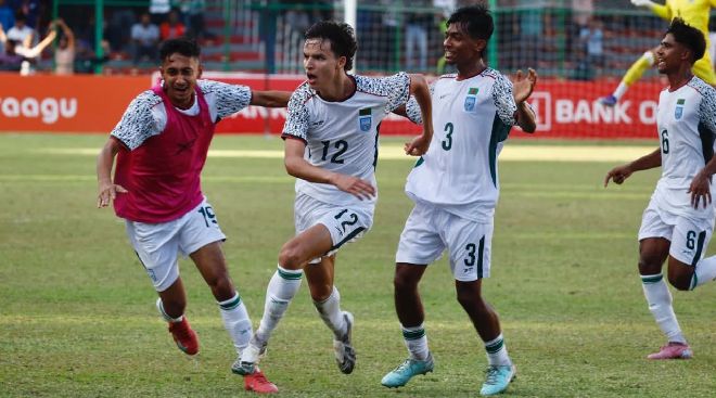 মালদ্বীপের জাতীয় ফুটবল স্টেডিয়ামে অনুষ্ঠিত ম্যাচে দ্বিতীয়ার্ধে ঝলসে ওঠেন এই যুক্তরাষ্ট্রপ্রবাসী তরুণ ফরোয়ার্ড।ম্যাচের শুরুটা ছিল কিছুটা সতর্ক।