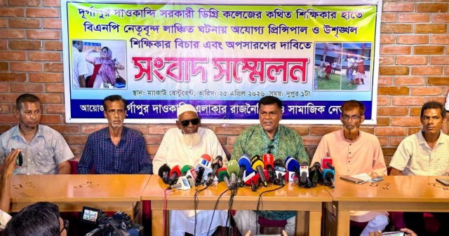 নিজস্ব প্রতিবেদক: রাজশাহীর দুর্গাপুর উপজেলার দাওকান্দি সরকারি ডিগ্রি কলেজে নারী প্রভাষককে কেন্দ্র করে সংঘটিত মারধরের ঘটনায় কলেজের অধ্যক্ষ আব্দুর রাজ্জাক ও প্রভাষক আলেয়া খাতুন হীরা’র অপসারণ দাবিতে ৪৮ ঘণ্টার আল্টিমেটাম দিয়েছে স্থানীয় বাসিন্দারা।