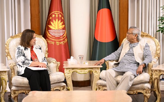 জাতিসংঘের আবাসিক সমন্বয়ক গুইন লুইসের প্রধান উপদেষ্টা প্রফেসর মুহাম্মদ ইউনূসের সঙ্গে বিদায়ী সাক্ষাৎ। টুইট ডেস্ক: বাংলাদেশে জাতিসংঘের আবাসিক সমন্বয়ক গুইন