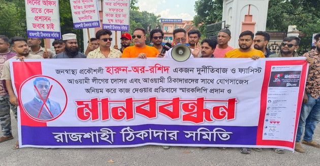 নিজস্ব প্রতিবেদক : রাজশাহীতে জনস্বাস্থ্য প্রকৌশল বিভাগের নির্বাহী প্রকৌশলী হারুন অর রশিদের বিরুদ্ধে দুর্নীতি ও ক্ষমতার অপব্যবহারের অভিযোগ এনে মানববন্ধন